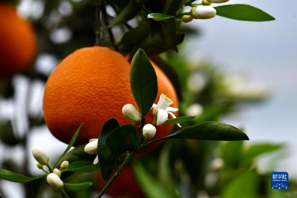 眼下,有“中国脐橙之乡”美誉的三峡库区湖北省秭归县长江两岸橙花盛开,晚熟脐橙挂满枝头,花果同树的橙树与峡江景观相映如画。