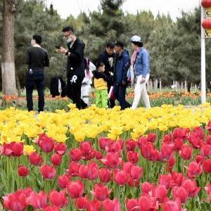 当日,北京永定河绿色港湾郁金香文化节在大兴区北臧村镇开幕,100余万株各式花卉竞相开放,游客徘徊其间宛如游弋在七彩花海。