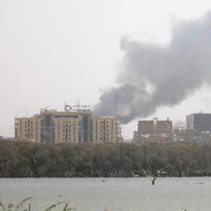 4月15日,苏丹首都喀土穆冒出浓烟。
