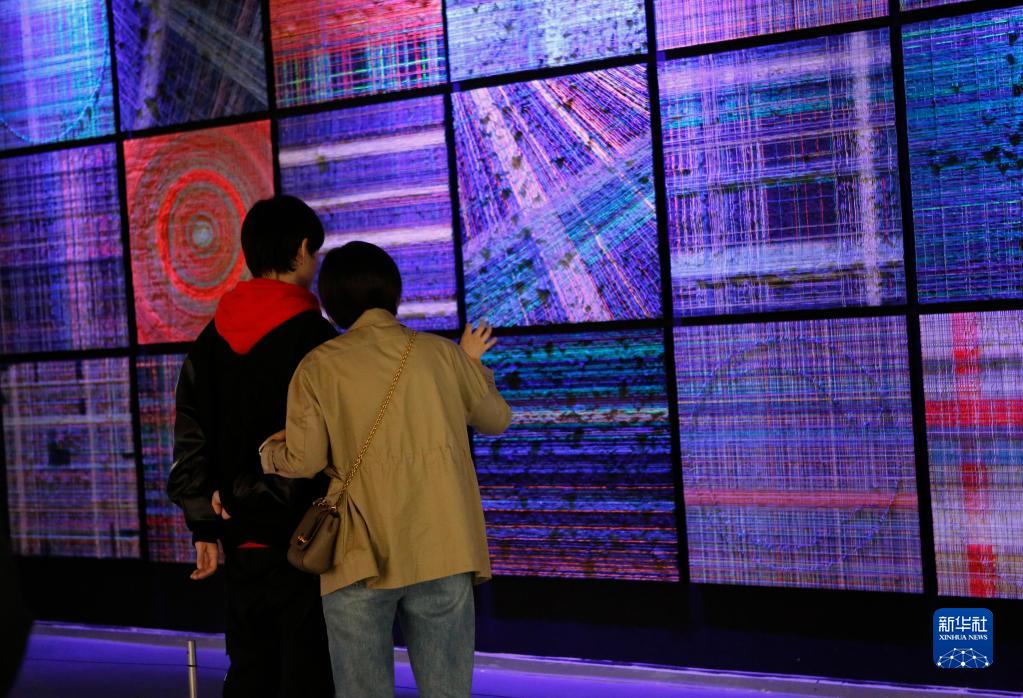 4月15日,观众在“2023第六届苏州·金鸡湖双年展”上参观艺术作品。