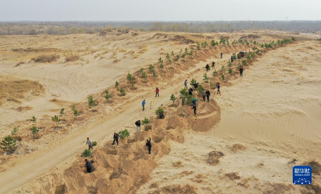 近日,在内蒙古通辽市科尔沁左翼后旗,治沙工人忙着植树造林,给科尔沁沙地披上“绿装”。科尔沁沙地横跨内蒙古、吉林、辽宁三省区,沙地面积7760万亩,在内蒙古通辽市境内占52.7%。近年来,依托“三北”防护林、退耕还林、公益林保护等重点生态工程,内蒙古通辽市不断加大植树造林、草原修复和生态保护力度,科尔沁沙地生态环境得到改善。
