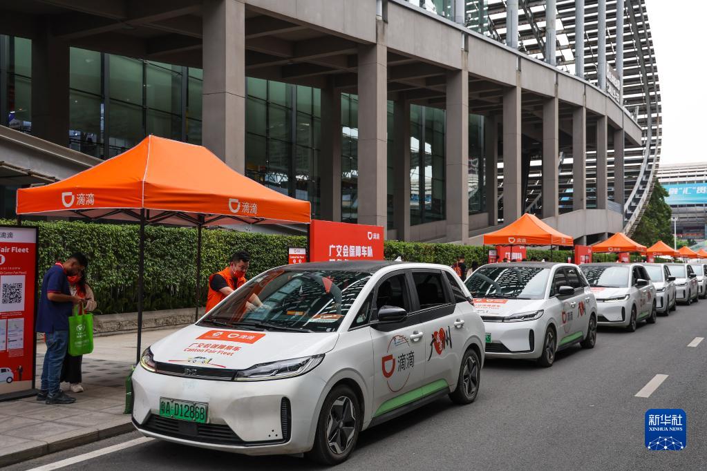 本届广交会专门在场馆区域设置了网约车乘车点,方便客商便捷通行(4月15日摄)。