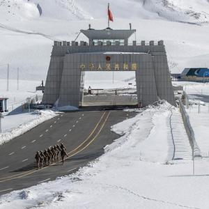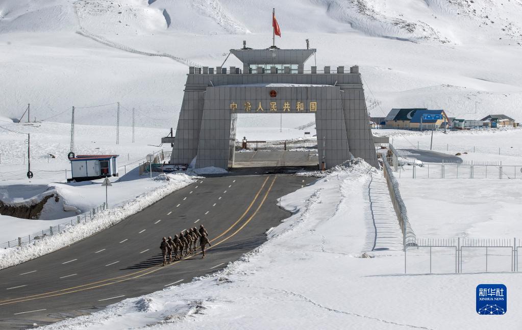 4月13日,边防连官兵在红其拉甫国门巡逻。