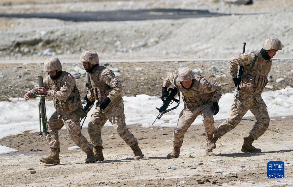 4月13日,边防连战士在进行训练。