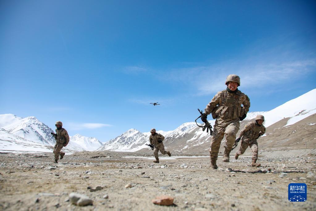 4月13日,边防连官兵在进行训练。