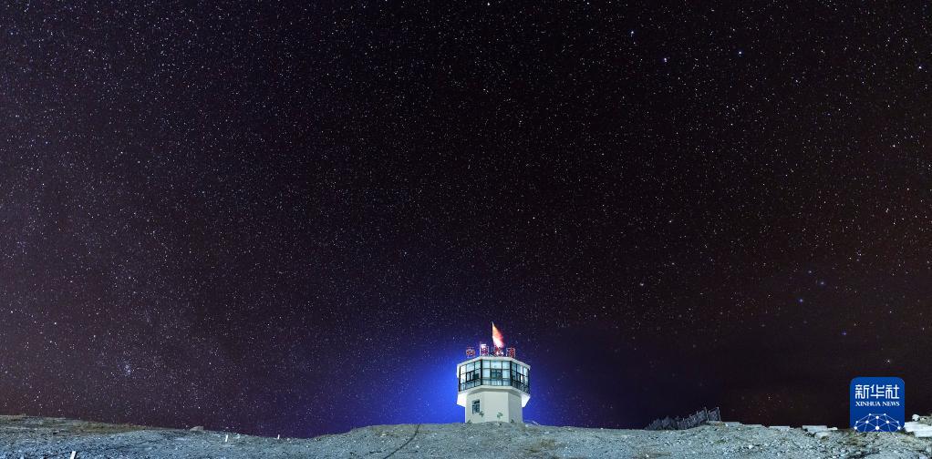 这是4月12日深夜拍摄的红其拉甫哨所。哨所与满天繁星相互辉映。