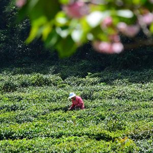 4月17日,村民在贵州省黔东南苗族侗族自治州从江县刚边壮族乡良田村中药材种植基地采收板蓝根苗(无人机照片)。