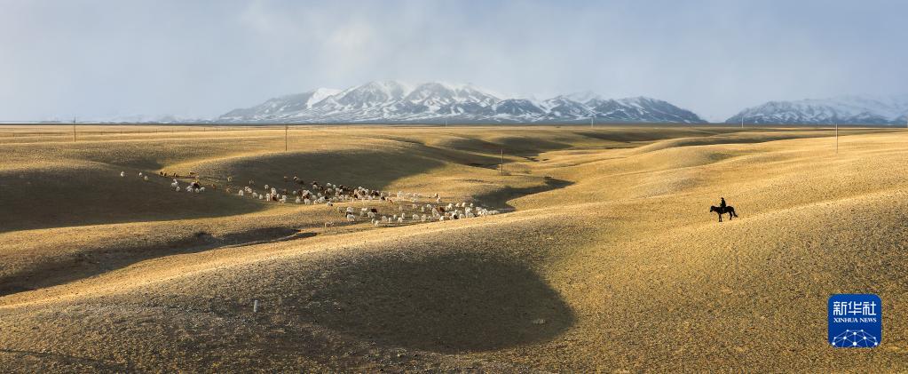 牧归时分,哈布得拉什么骑马准备收羊(4月12日摄)。