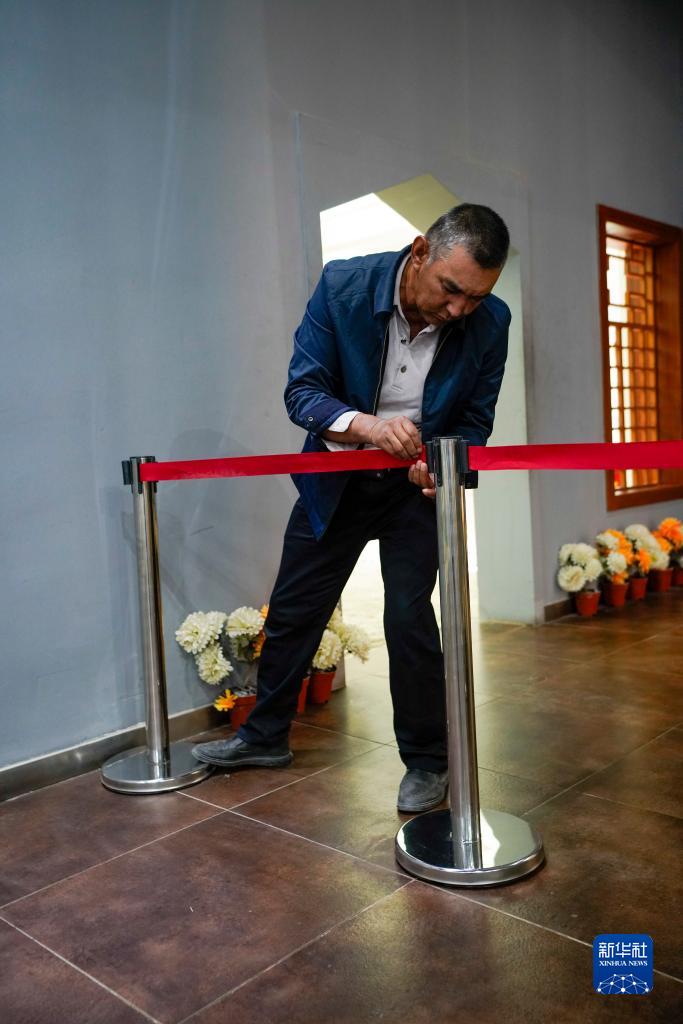 4月16日,艾尼瓦尔·艾买尔在新疆叶城烈士陵园内工作。