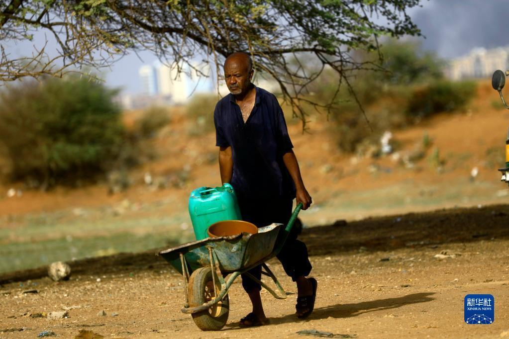 4月17日,由于武装冲突导致停水,苏丹喀土穆市民到尼罗河打水。