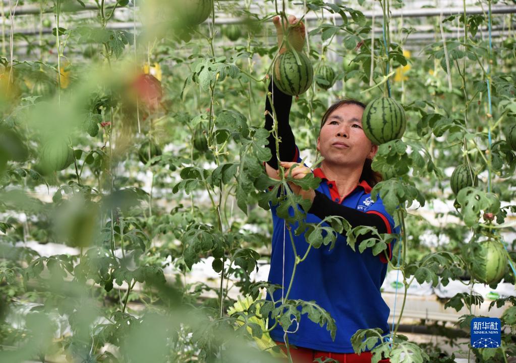4月18日,河北省邢台市南和区贾宋镇一家现代农业园区工人在对西瓜进行日常管理。