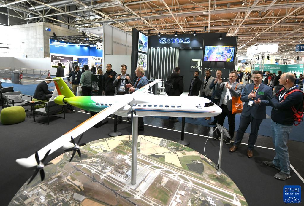 4月17日,人们在德国汉诺威工业博览会上参观一款氢能飞机模型。
