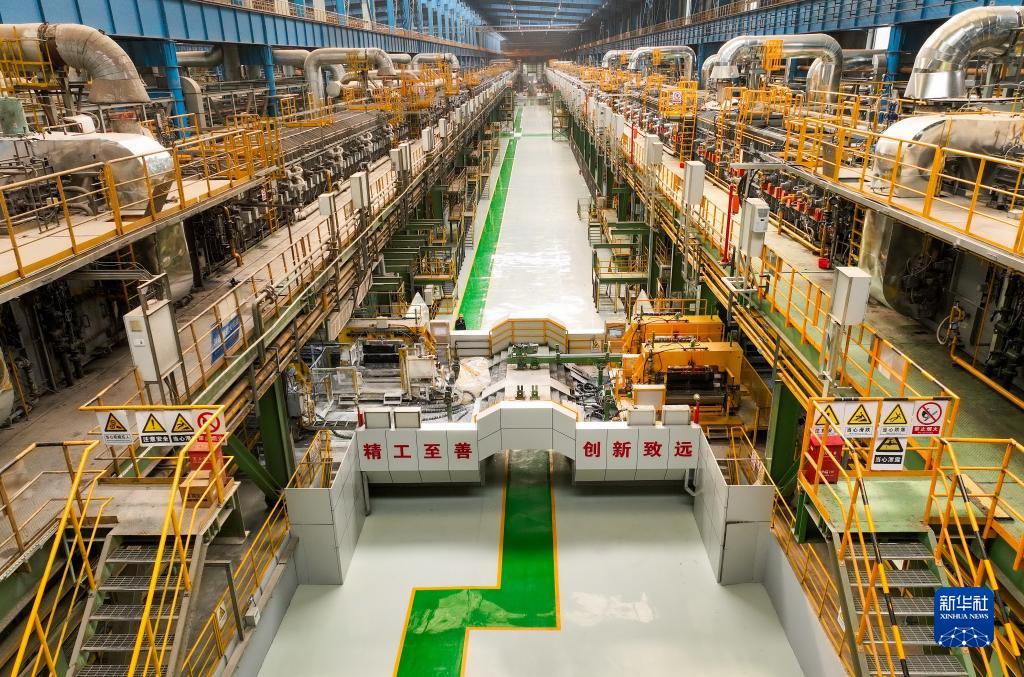 这是高性能取向电工钢专业化生产线(4月19日摄,无人机照片)。