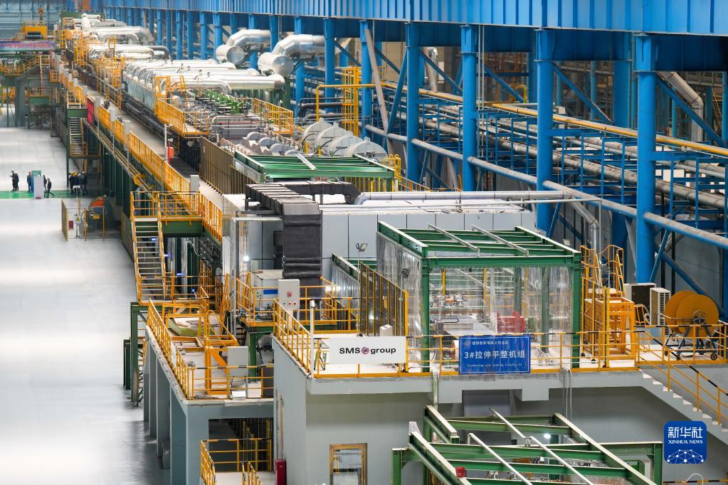 这是高性能取向电工钢专业化生产线(4月19日摄,无人机照片)。