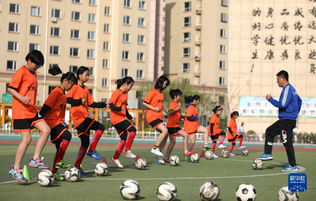 春日里,在河北省承德市宽城满族自治县第三小学,女足队员在春光里训练,感受足球运动的乐趣。近年来,宽城县积极推进“足球进校园”活动,通过在中小学开设足球课程,成立足球社团、举办足球比赛等形式,让更多的孩子接触足球,增强身体素质。