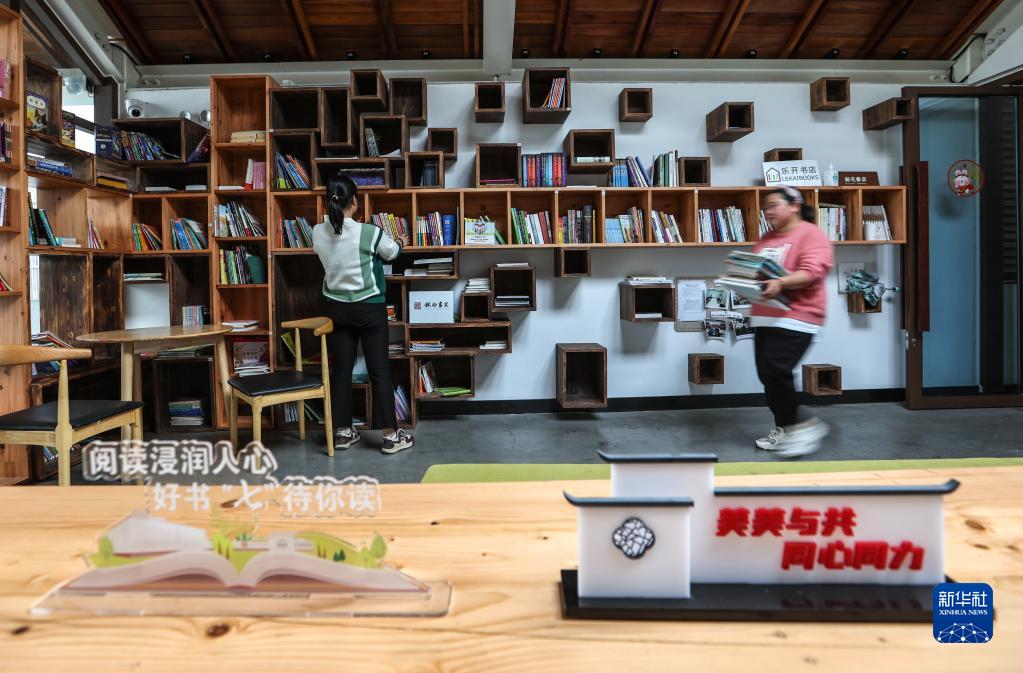 4月19日,工作人员在江村小书斋整理少儿读物。