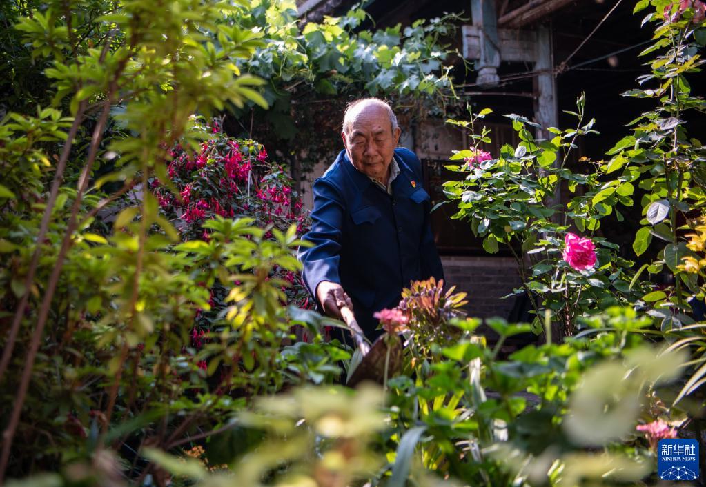 4月18日,李存德在家中浇花。新华社记者 江文耀 摄