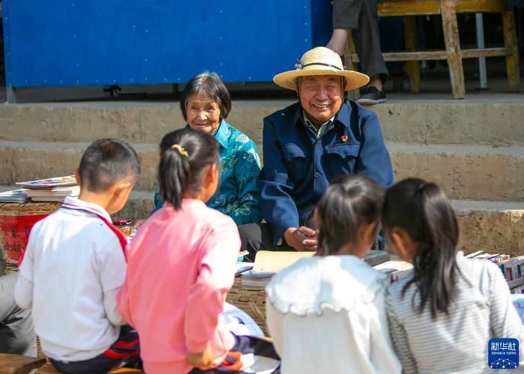4月19日,小朋友在红星村的爱心流动书摊阅读。新华社记者 崔文 摄