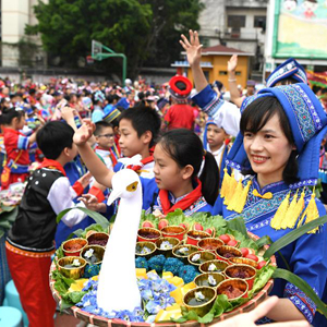 当日,广西南宁市逸夫小学举行2023“壮族三月三”暨“铸牢中华民族共同体意识”主题教育活动。色彩缤纷的民族服装,民族风情浓郁的歌舞表演,多种多样的特色美食,让校园处处洋溢着欢乐。随着传统节日“壮族三月三”临近,广西各地陆续开展丰富多彩的庆祝活动。