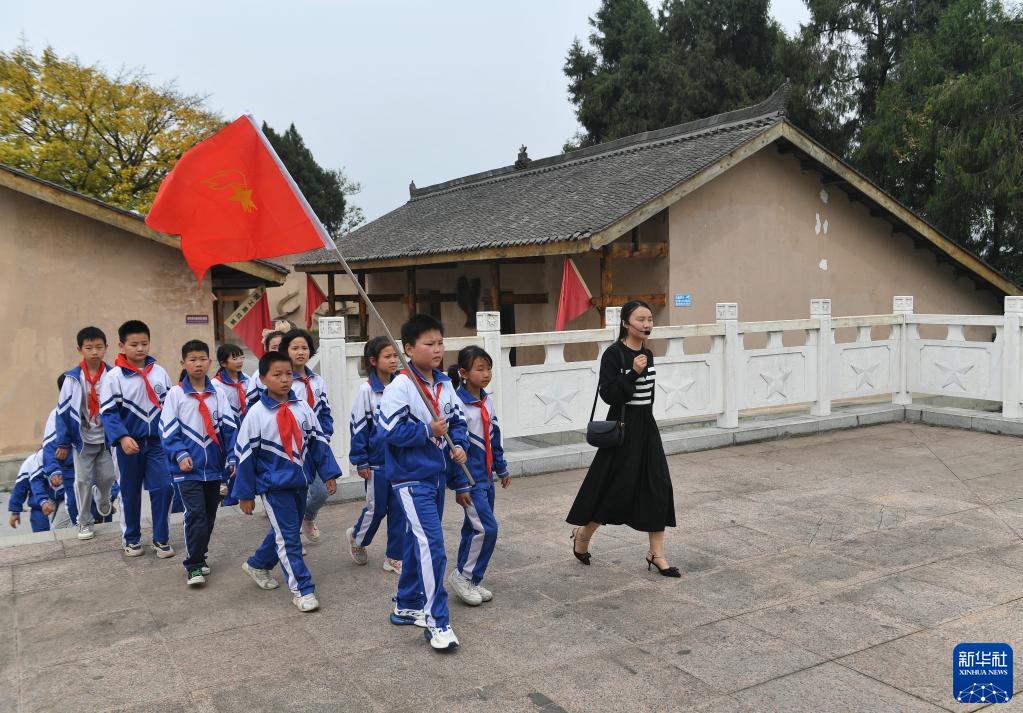 4月18日,冯炼组织学生来到红军街,向学生讲述红军故事。