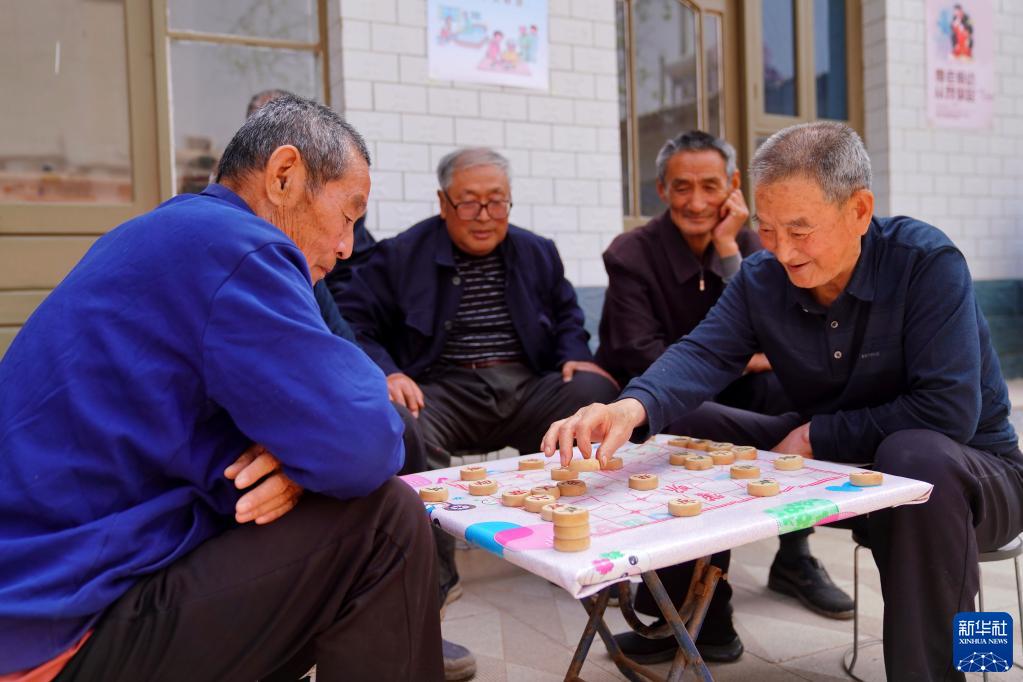 4月20日,老人们在河北省平乡县寻召村“幸福小院”内下象棋。