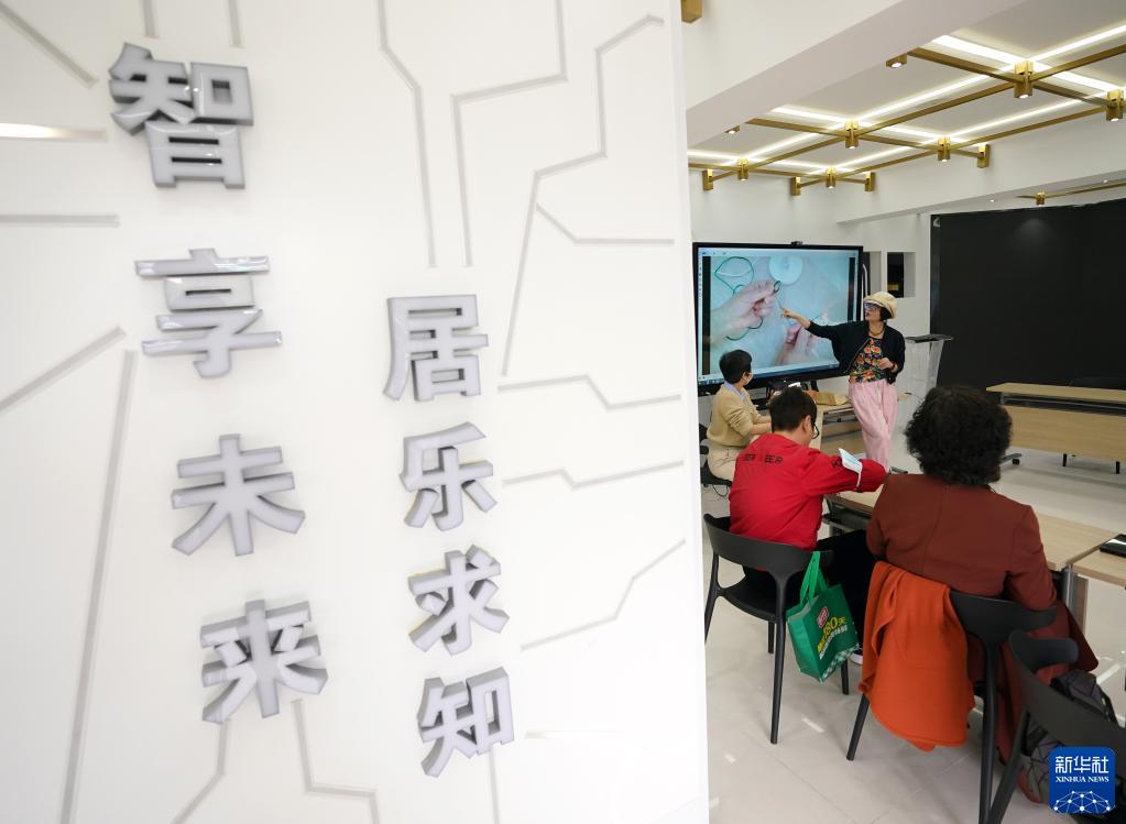 4月20日,杭州市西湖区西溪街道求智未来社区居民在未来社区会客厅内学习编织。