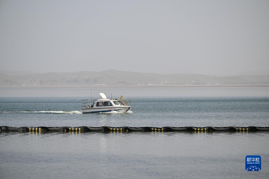 4月18日,胡登雨在岱海开船巡护。