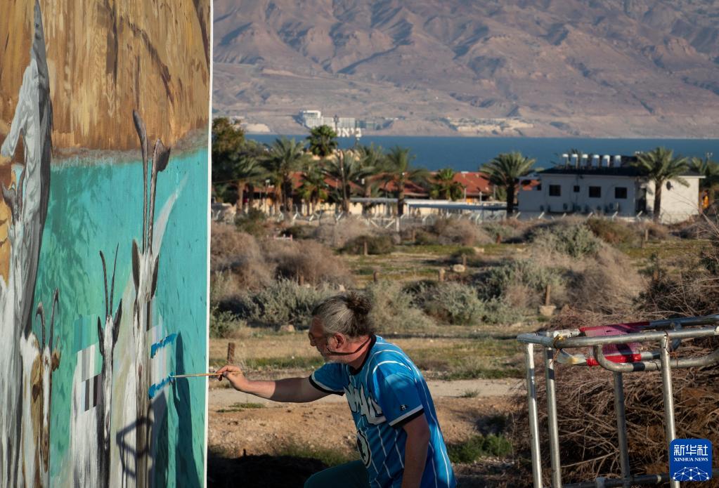 4月22日是世界地球日。近日,来自世界各地的十名艺术家来到位于耶路撒冷东南方的死海西岸,在废弃房屋的外墙上创作多幅“关注死海”主题画作,呼吁人们重视死海萎缩问题,共同努力呵护死海。据报道,死海水位每年平均下降大约1.2米,水面缩减超过三分之一,诸多因素令死海前景堪忧。
