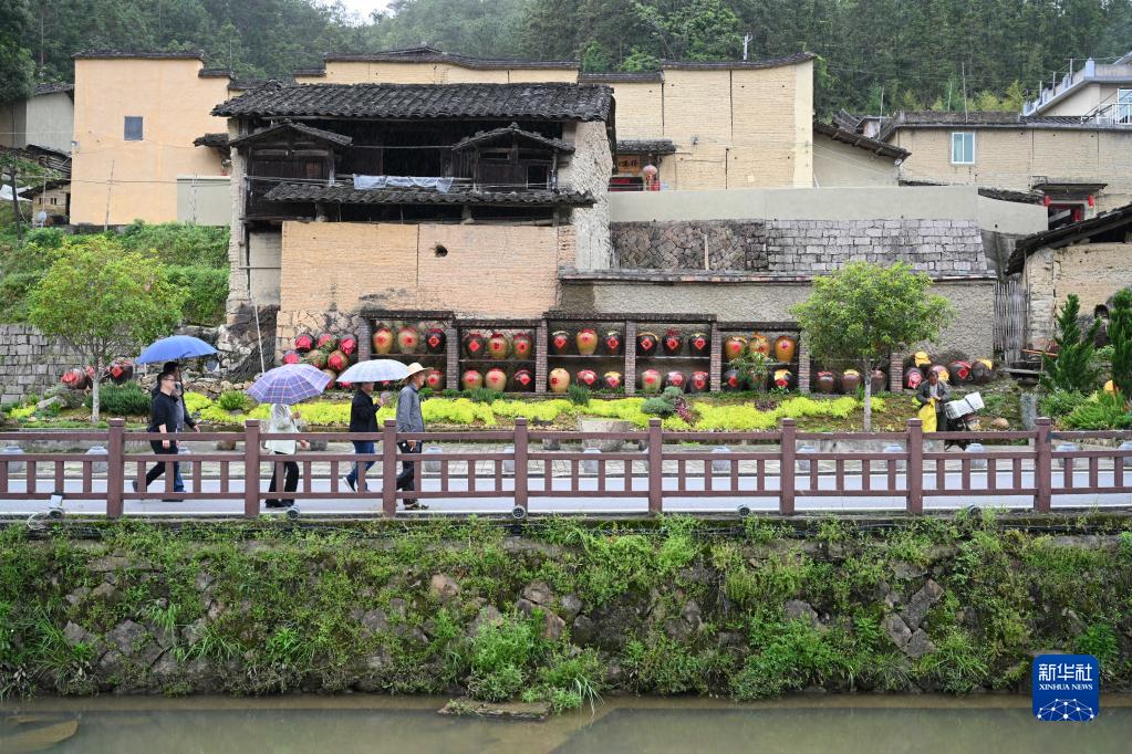 4月20日,人们在屏南县代溪镇北墘村参观游玩。