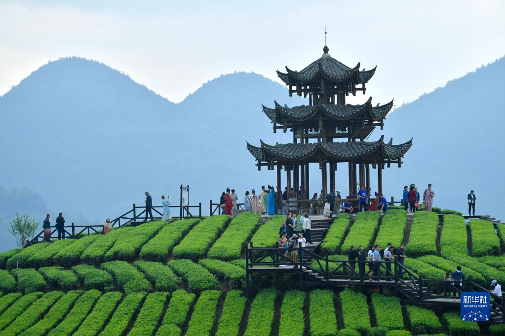 地处鄂西山区的宣恩县是产茶大县,出产的伍家台贡茶是国家地理标志产品。当日,宣恩县伍家台贡茶文化嘉年华活动启幕,茶园服装秀、茶山非遗展演、贡茶文化体验等系列活动举行,吸引众多游客参与其中,感受茶乡的魅力。