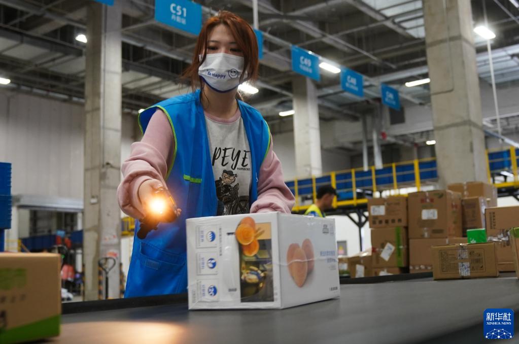 4月21日,员工在位于南京空港经济开发区(江宁)一家企业的商超仓内忙碌。