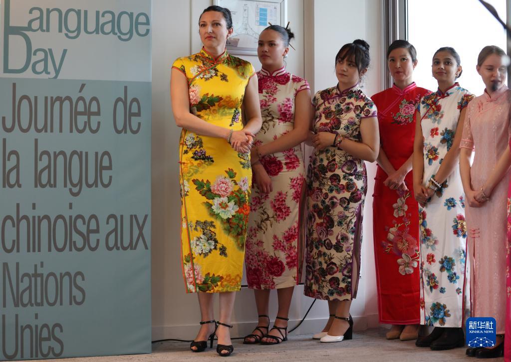 4月18日,在位于法国巴黎的联合国教科文组织总部举行的联合国中文日庆祝活动上,演员身着旗袍候场准备。