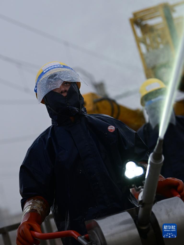 4月20日,中国铁路青藏集团有限公司西宁供电段格尔木大修车间大修网工区检修工王家彤使用高压冲洗水枪对绝缘子设备进行清洗。