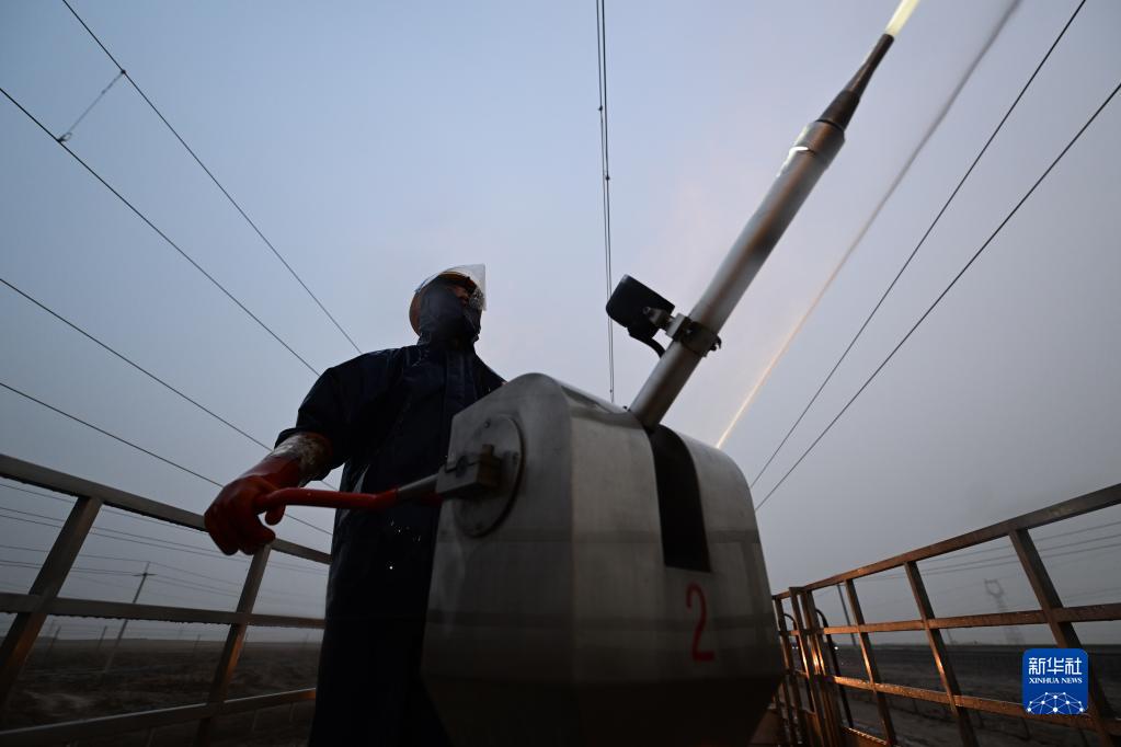 4月20日,中国铁路青藏集团有限公司西宁供电段格尔木大修车间大修网工区检修工使用高压冲洗水枪对绝缘子设备进行清洗。