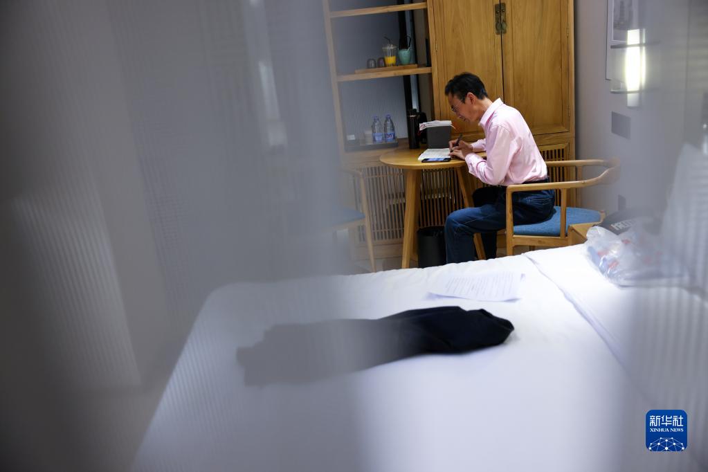 4月11日,朱彦军在北京一家宾馆抄录诗词,他依然保持着随手抄录诗词的习惯。他说,以前收入有限,一有空就到新华书店“抄书”。“现在有了手机,方便多了。”新华社记者 刘金海 摄