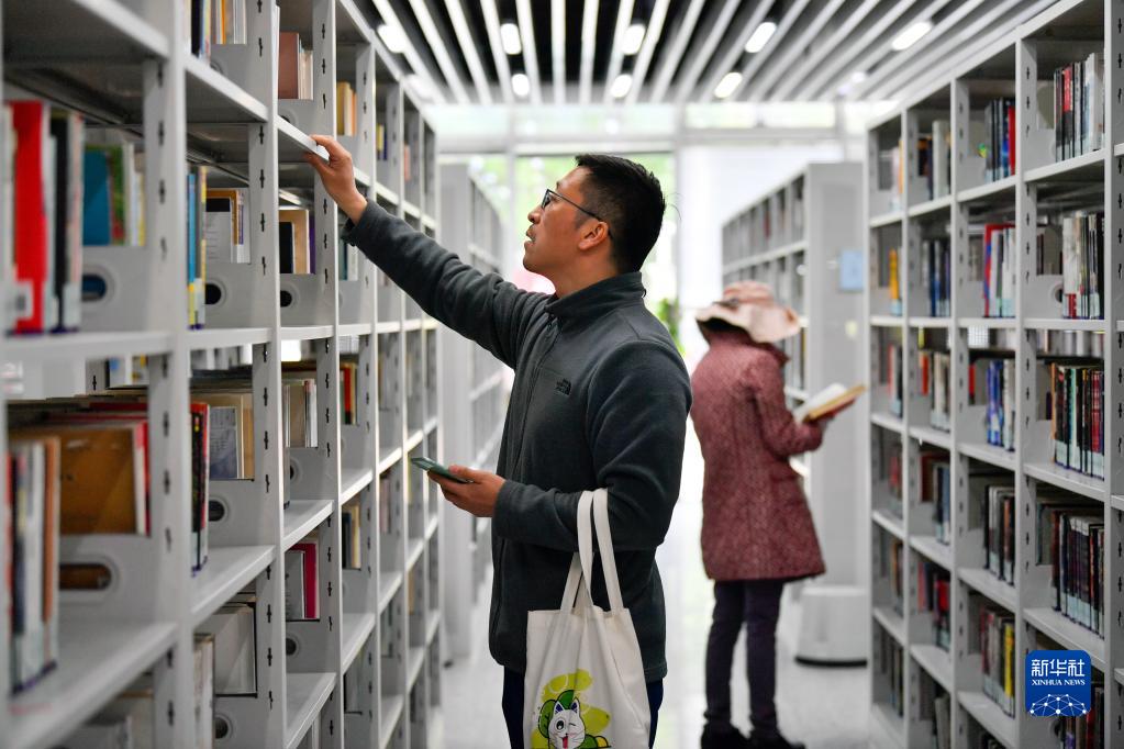 4月21日,在天津市河西区文化中心,读者在图书馆内查阅书籍。