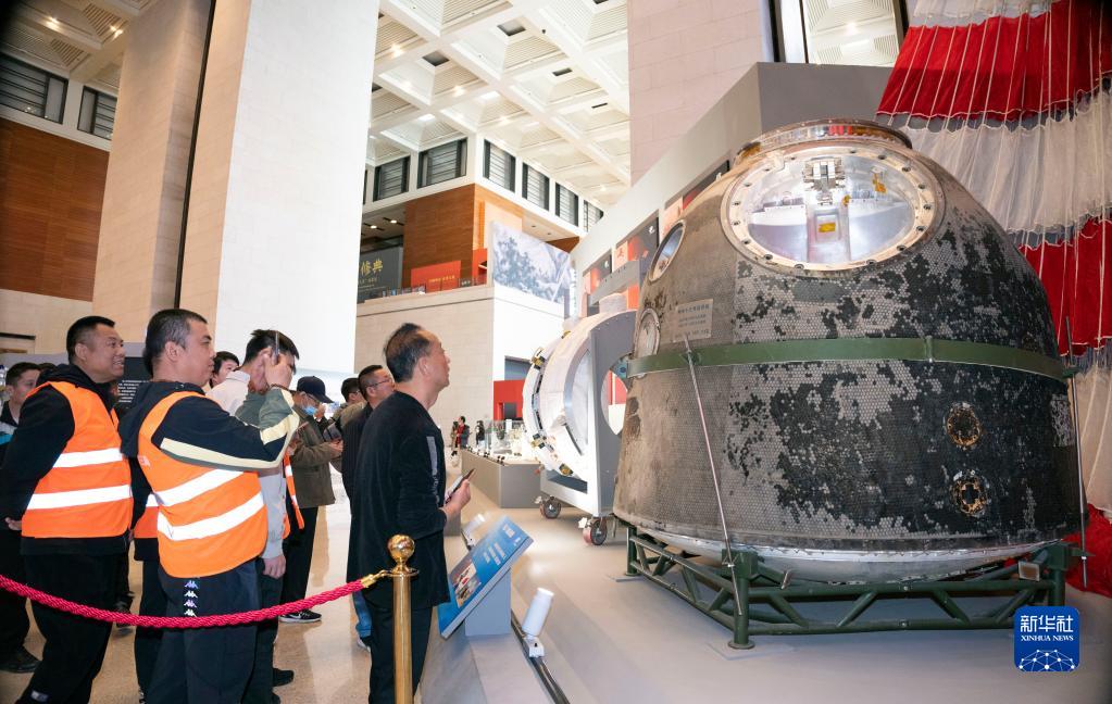 4月23日,中建三局顺义航天产业园项目一线建设者在参观“逐梦寰宇问苍穹——中国载人航天工程三十年成就展”。