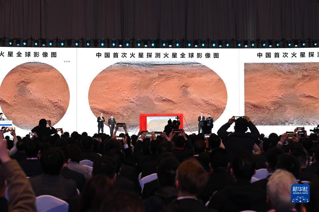 4月24日,在2023年“中国航天日”主场活动启动仪式上,国家航天局和中国科学院联合发布中国首次火星探测火星全球影像图。