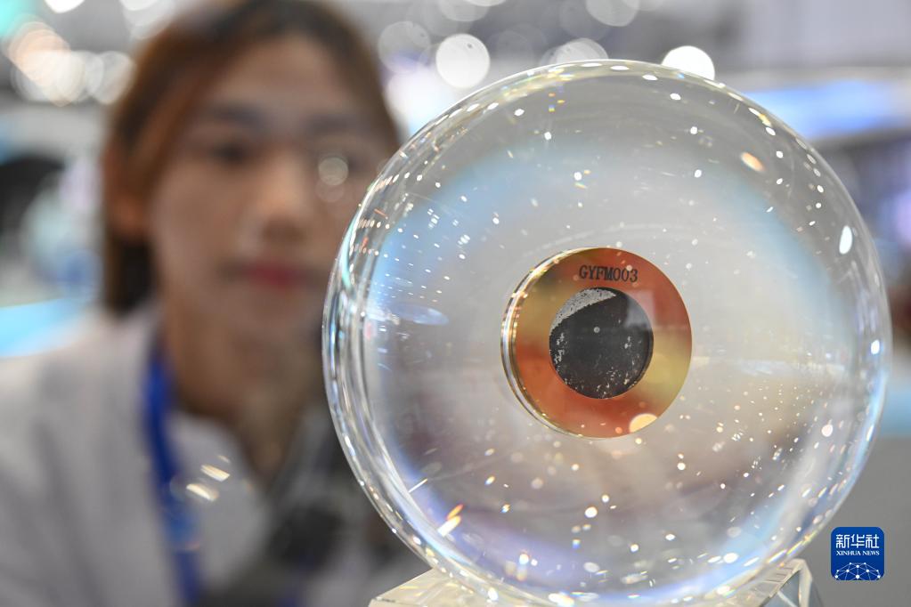 4月24日,观众在2023年“中国航天日”科普展览上观察月壤。