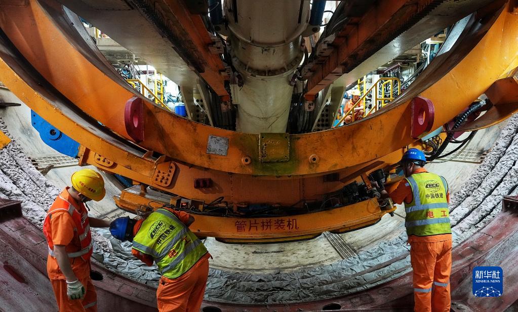 4月24日,中铁十一局技术人员检查准备始发的“铁兵广花13号”盾构机的管片拼装机。