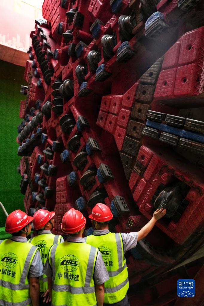 4月24日,中铁十一局技术人员检查准备始发的“铁兵广花13号”盾构机刀盘。