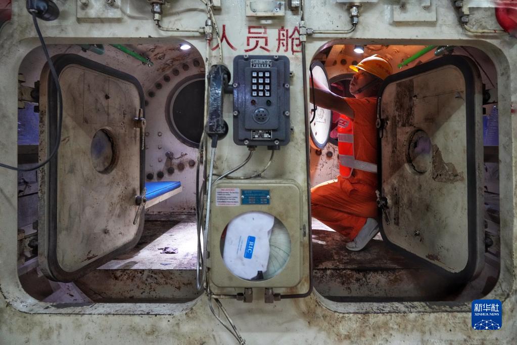 4月24日,中铁十一局技术人员检查准备始发的“铁兵广花13号”盾构机刀头舱。