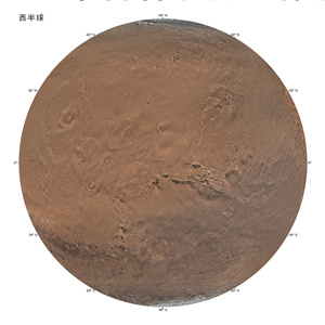 这是4月24日发布的火星东西半球正射投影图。