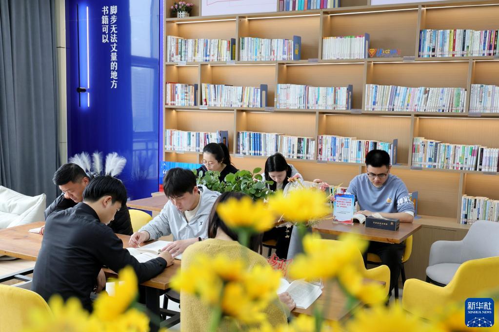 4月24日,读者在山东省临沂市临沭县城市书房阅读。