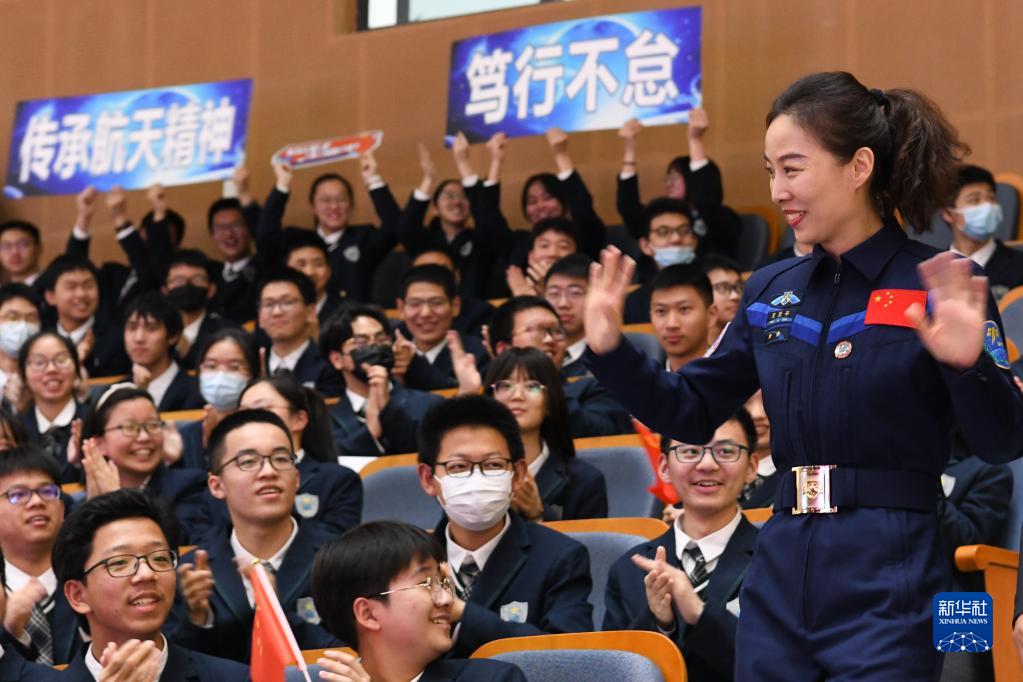 4月24日,航天员王亚平走进安徽省合肥市第六中学,向学生讲述中国载人航天故事,与学生一起做科学实验,传承航天精神。王亚平是中国首位进驻空间站、首位出舱活动的女航天员,也是中国首位“太空教师”,自2013年以来她进行了三次“太空授课”,激发了青少年探索宇宙的热情。