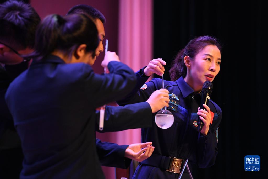 4月24日,航天员王亚平走进安徽省合肥市第六中学,向学生讲述中国载人航天故事,与学生一起做科学实验,传承航天精神。王亚平是中国首位进驻空间站、首位出舱活动的女航天员,也是中国首位“太空教师”,自2013年以来她进行了三次“太空授课”,激发了青少年探索宇宙的热情。