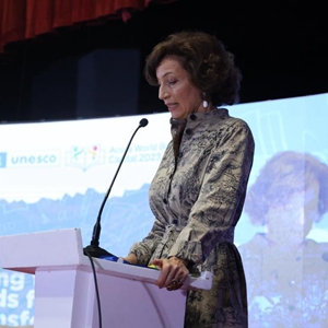 4月24日,联合国教科文组织总干事阿祖莱在加纳首都阿克拉举行的仪式上讲话。