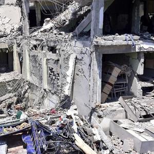这是4月25日在巴基斯坦斯瓦特地区卡巴尔镇拍摄的爆炸事件现场。