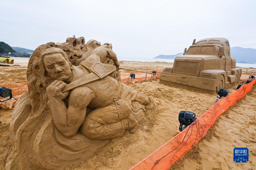 近日,第二十四届舟山国际沙雕节在浙江省舟山市朱家尖南沙景区举行。本届沙雕节以“动感亚运”为主题,展出了50多件沙雕作品,吸引游客前来参观游玩。