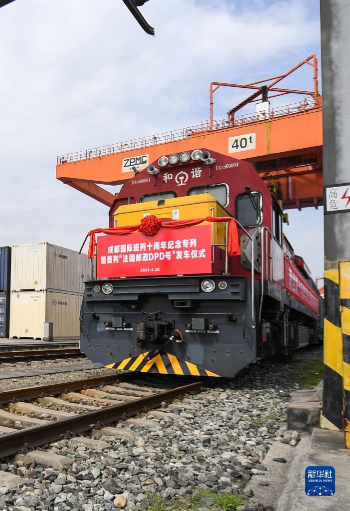 当日,满载小家电、数码产品、定制服装等跨境电商货物的成都国际班列十周年纪念专列暨首列“法国邮政DPD号” 在成都国际铁路港发车。据了解,该趟班列是法国邮政DPD公司首次使用中欧班列进行长途运输,预计将于半个月内运抵欧洲各地。